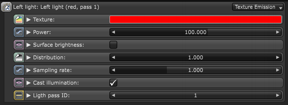 First we need to assing each emitter an ID to map it the desired light pass. We assign the emitters to light passes 1, 2 and 3.