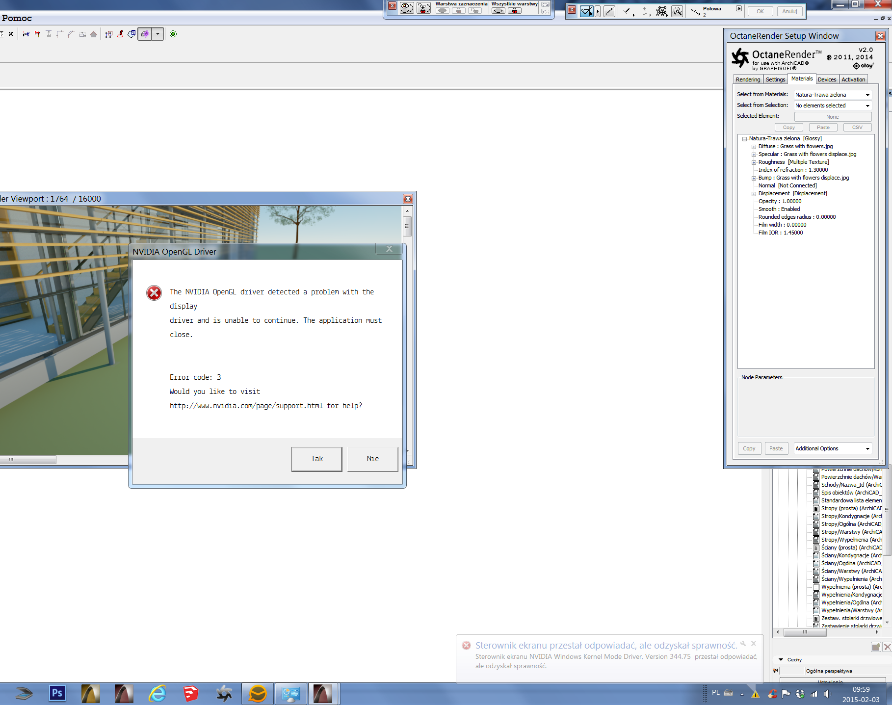 Tried to assign a grass material from DB, called Grass with flowers to my AC texture and experienced a black screen and then NVIDIA Open GL Driver error window as attached.