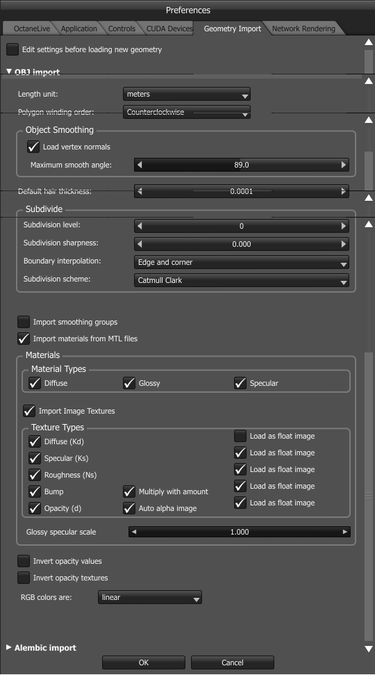Octane Import (default values)