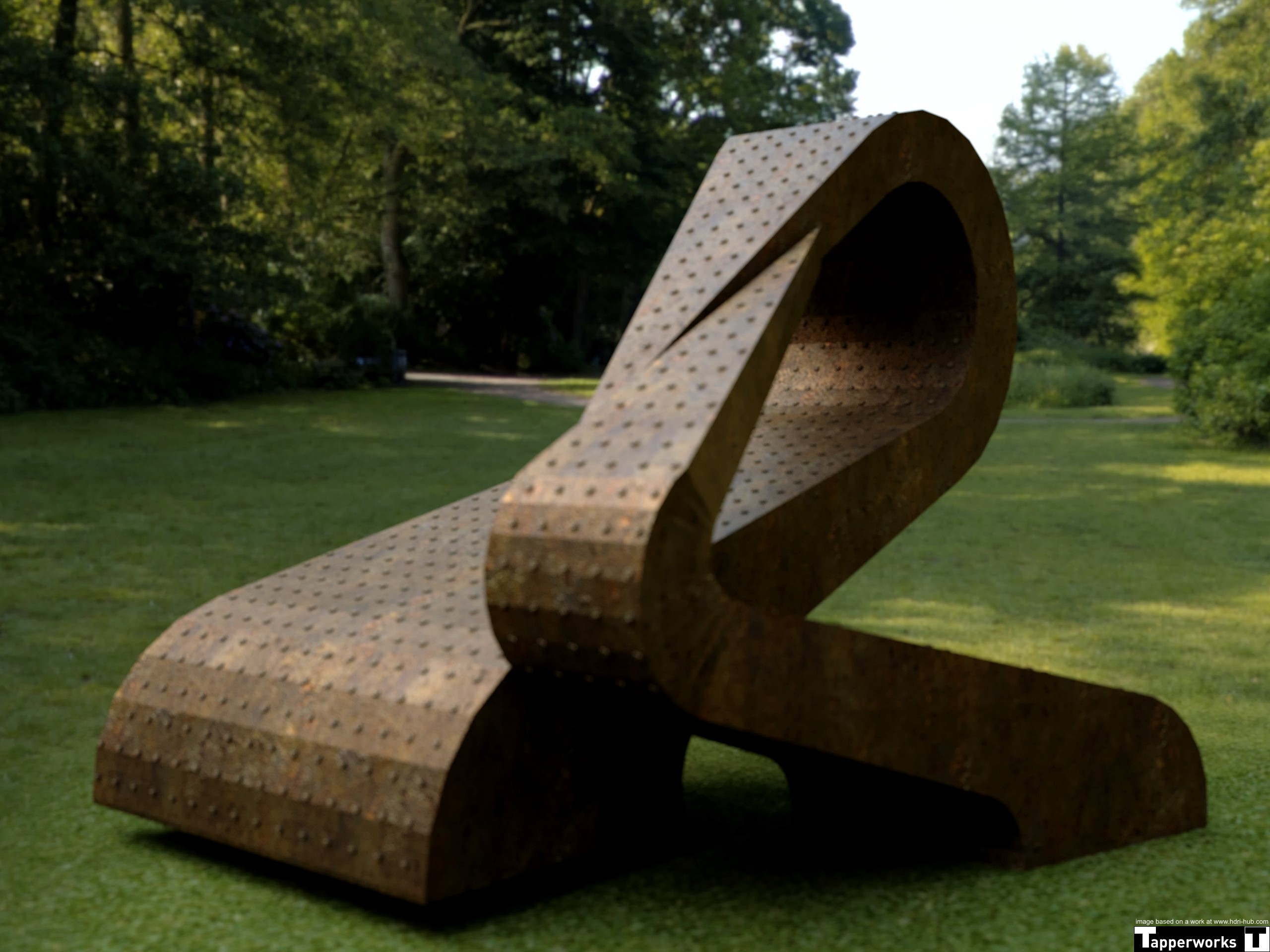 The project is still in progress and this is not the final 3d-model of the sculpture and probably the final render will be with a building background instead of this park.