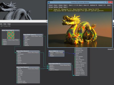 - Full support of Octane IPR (interactive preview render) working in a external window who allow user to zoom, pan, stop render, etc.