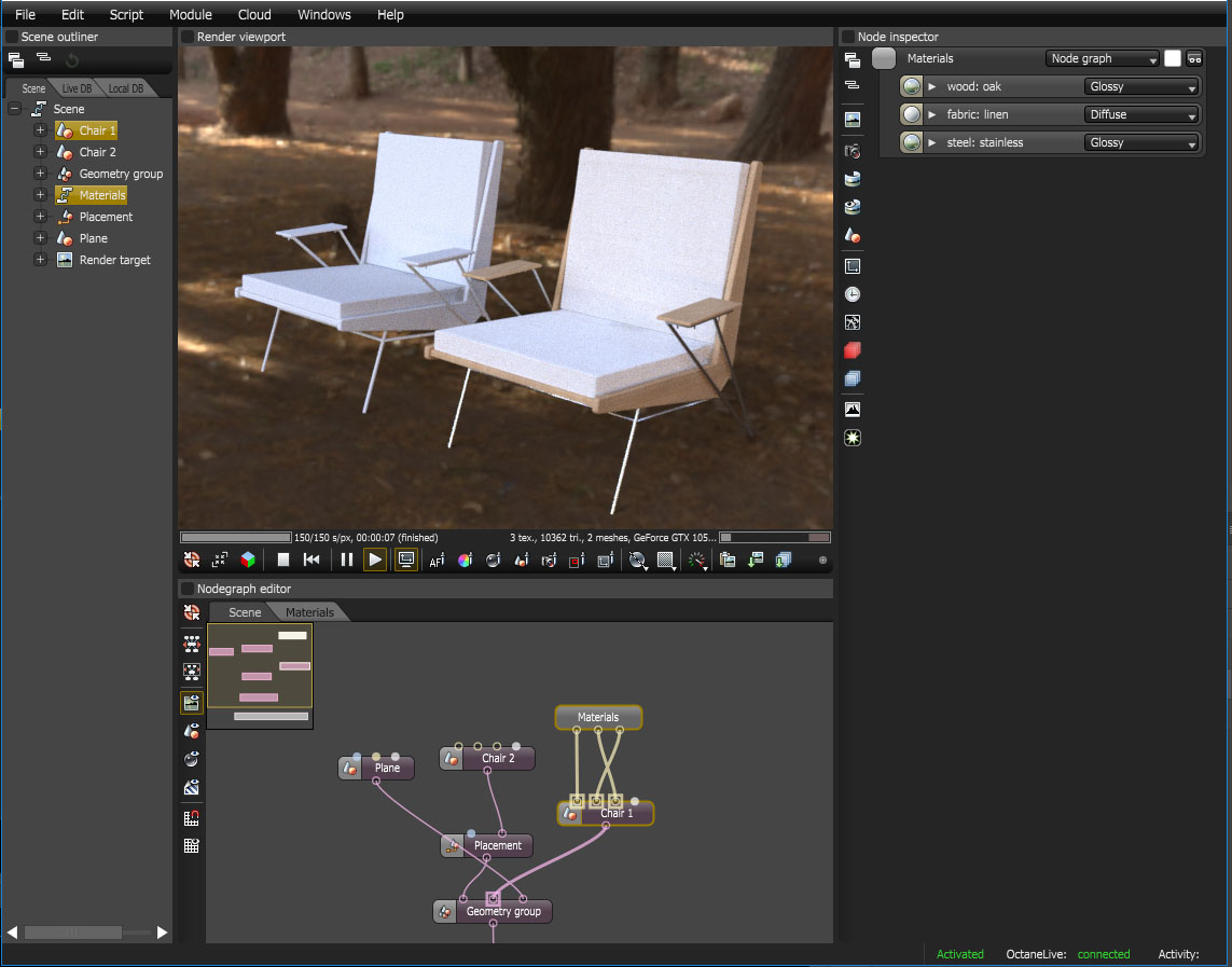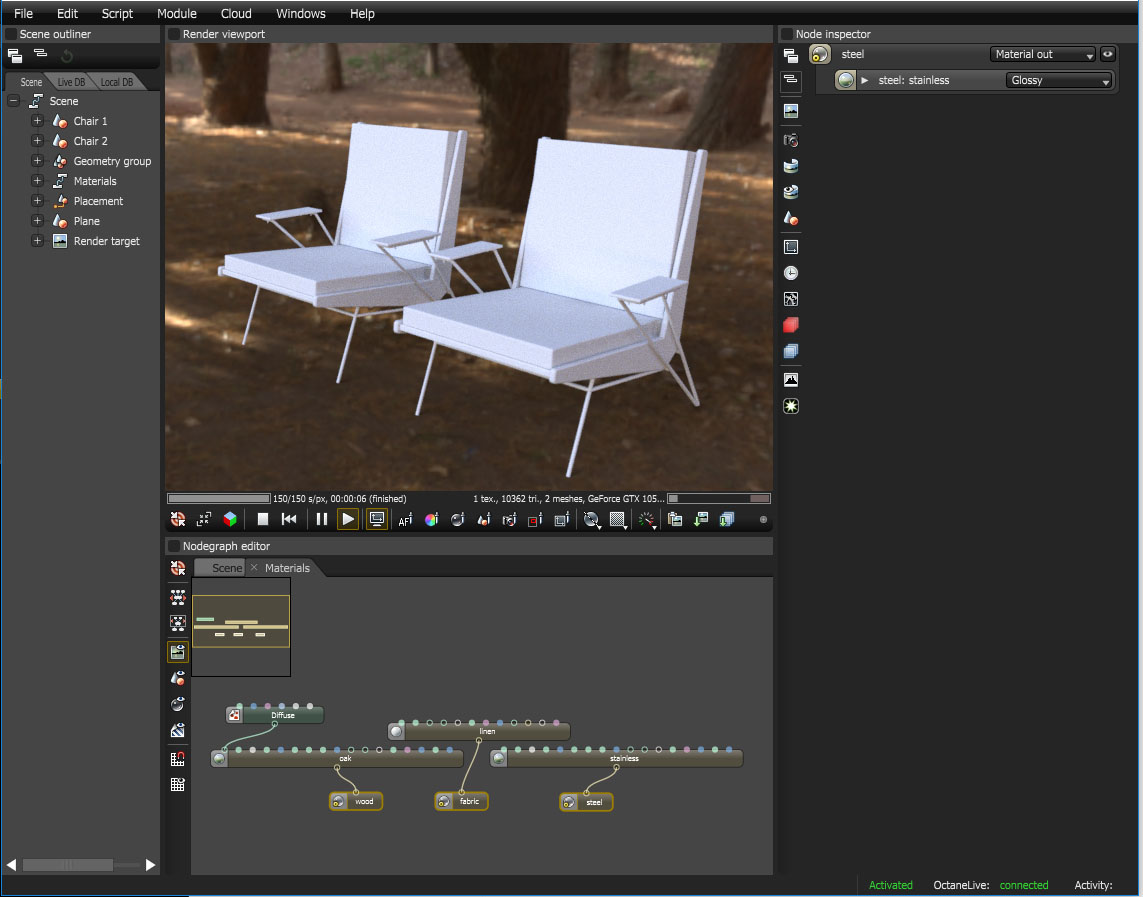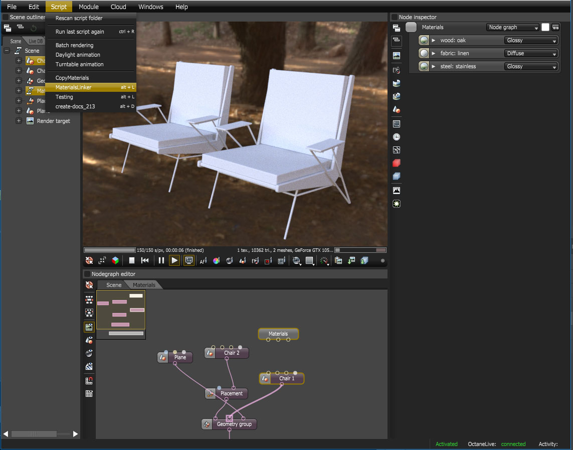 I'm sharing a script that I wrote to help deal with the large number of materials and meshes I have in my architectural scenes. I used to spend a lot of time connecting pins to each other for every new mesh in my scene, and it was tedious especially with so many lines covering the scene graph. This script runs through all the material input pins of the selected meshes, and matches them to material output pins that reside inside a separate node graph where I have all my materials. Here's how it's used: