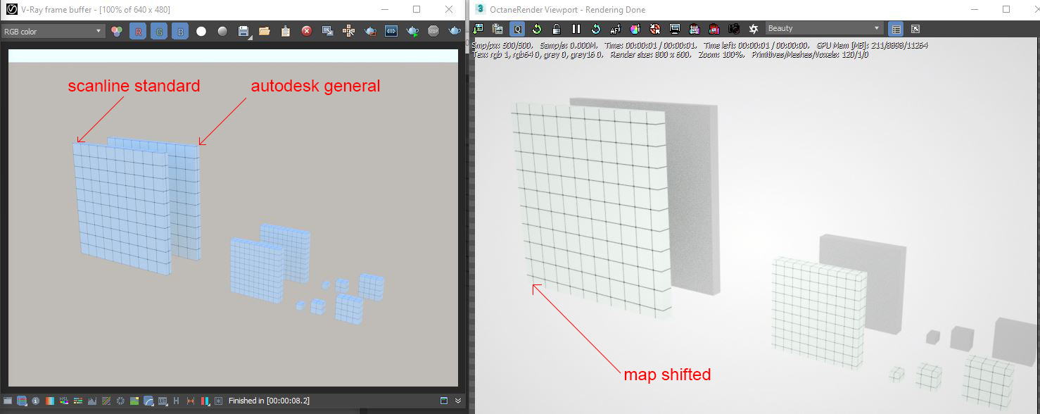 in Octane, the standard material can be rendered in right size but not right location