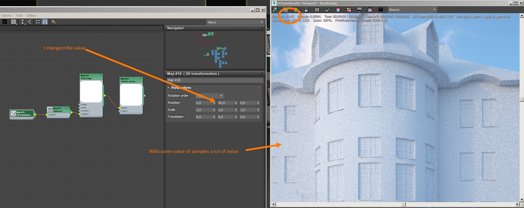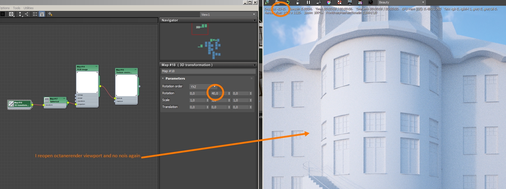 - Implemented a feeding of Octane image textures by non-Octane textures input. Now not only BitmapTex can be connected to "bitmap" attribute of Octane image textures. In this case the new "Bake input scale" and "Bake input resolution" attributes of Octane image texture must be tuned accordingly. But I still advise you to not abuse this approach too much, and still use the old efficient way: manually baking the texture to the file and use this file in created Octane image node. Because in the latter case you will do this manual baking only once - when you are creating the texture. But when you use this "on the fly" texture baking approach - the plugin will render (using standard 3ds Max CPU-calculated nodes) and bake every such texture every time during scene translation. So, if you have quite a few of such textures with high baking-resolution set - it will significantly increase the scene translation time. My measures for just one 3ds Max "Marble texture" show about 67ms rendering and baking it into 512x512 image buffer, and about 1500ms to do the same into 4092x4092 image buffer. Multiply this by amount of your non-Octane textures in the Octane scene - and you will get the overall slowdown time of every translation stage (the CPU-stage before Octane even starts to render on GPU).