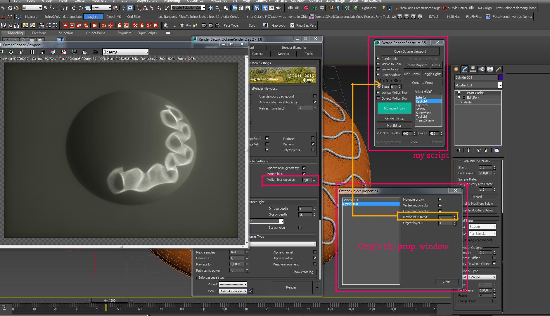 I also managed to add Motion Blur steps settings to the script. But this also doesnt let the scene update on the fly. But it does change the object property on the fly. The problem is coming from the octane plugin it self.