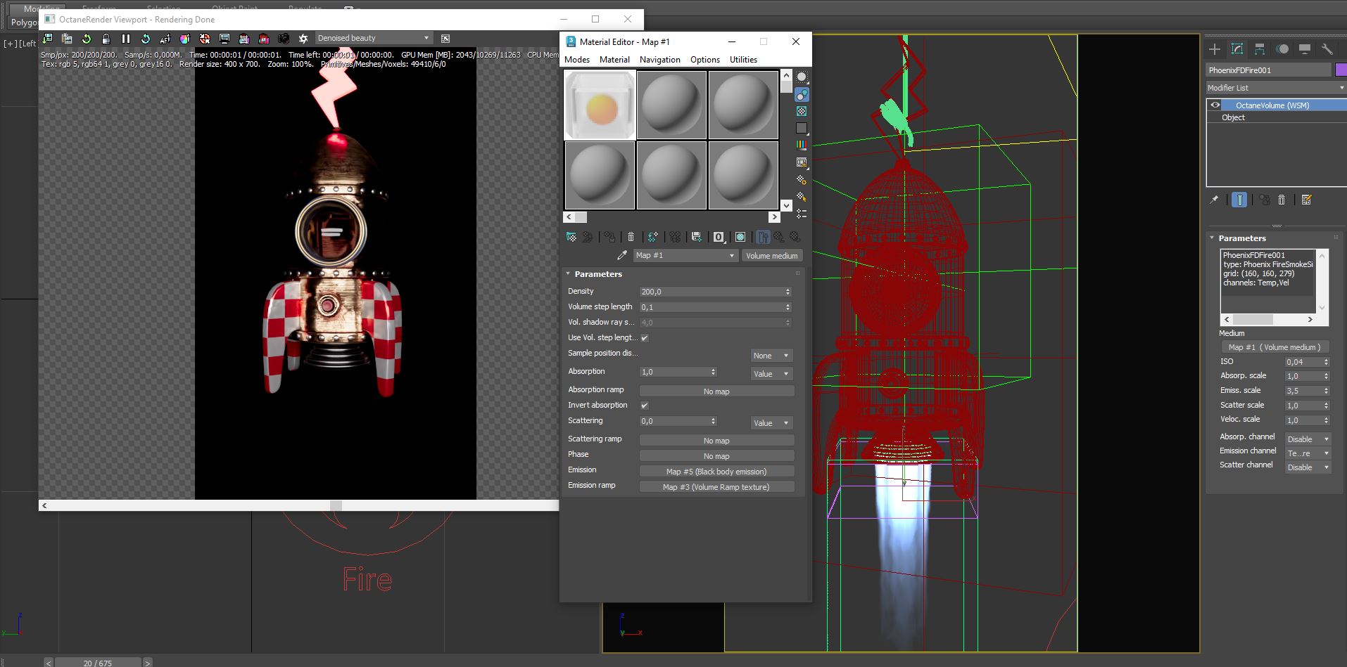 Phoenix fd Fire simulation + viewport