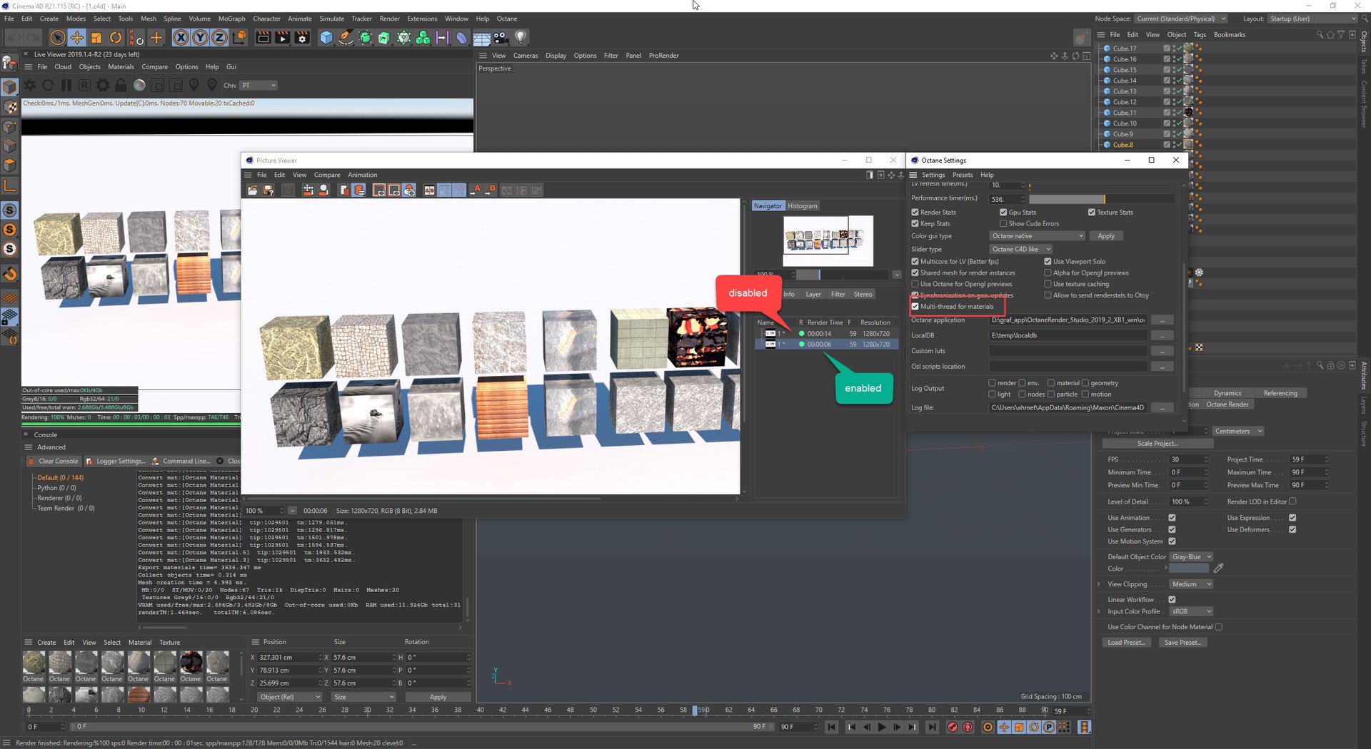 • Performance improvement: Multi-threading support for material creation on sending a render. Activate it by Settings->Other->Multi-thread for materials