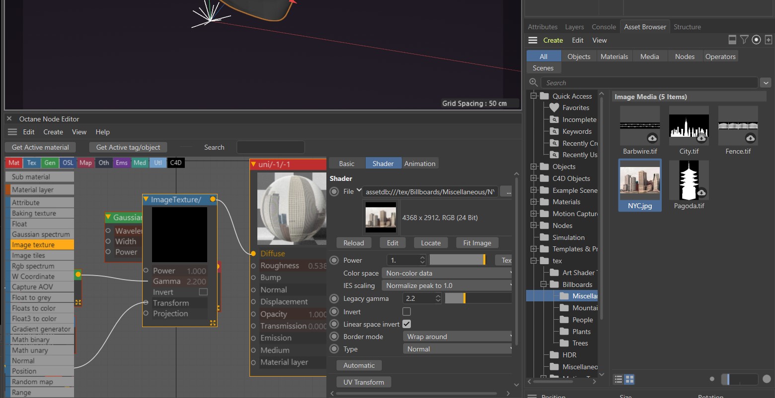 [*] Added blend mode "Reoriented normal" to the composite texture. The idea of that blend mode is described here. This example scene shows the difference between just adding the normal textures (which internally adds the deviations from the undestorted normal) and using that blend mode in the compositing texture. As you can see, the difference is not overly dramatic, but noticable: