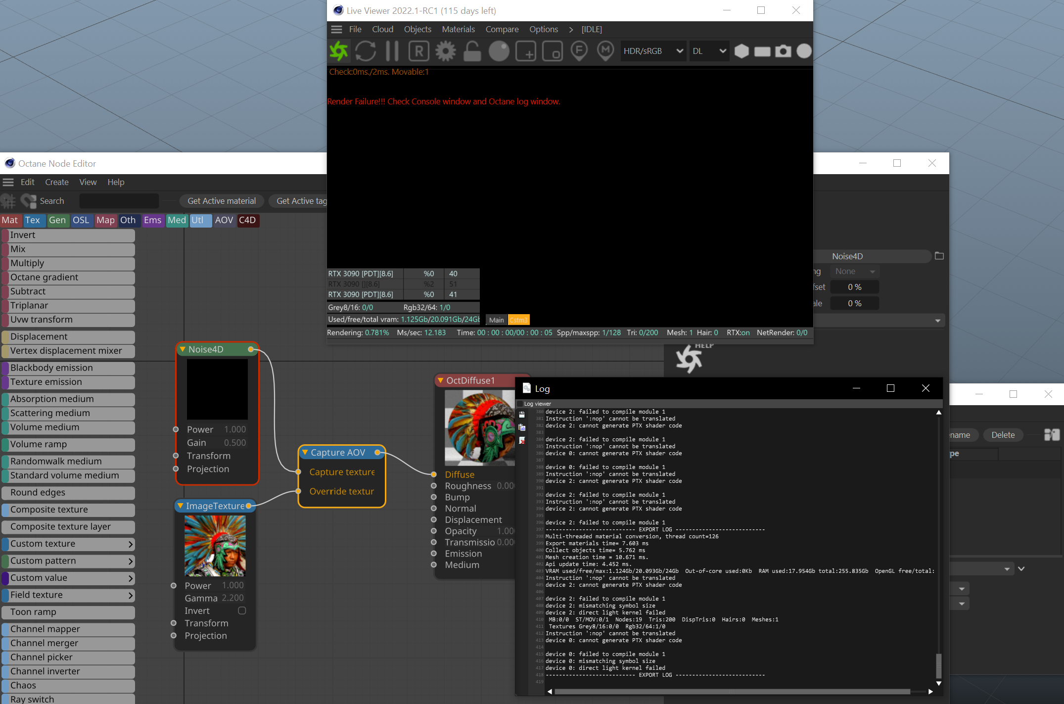 4- Check the free amount of GPU's VRAM and system's RAM while working. Low VRAM will/may cause CUDA errors. Be aware of some generator objects will have different triangle count in Picture Viewer than Live Viewer. It’s like “editor/render” parameter. Just try to use the same value. Also try to optimize your scene for polygon count, even use smaller images. Try to use Octane texture nodes rather than using C4D texture/shaders.
