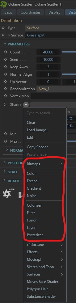 It's strange if you can use Octane shaders in Scatter's inputs. These are GPU based shaders and should not work with Scatter, because shader sampling done with CPU and only can work with CPU shaders. C4D's textures are CPU based, Octane's are not.
