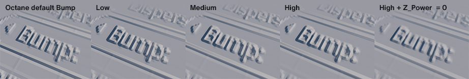 Radius of the area that is sampled. You can think of this as blur. But for bump/normal maps, blur also means “more intense”. Also this is one parameter that we don’t have in the Octane default bump input. If you take a big texture and use transform node to scale it down too much you might run into the issue that you see below. In this OSL shader you can easily avoid that by adjusting Radius to a smaller value.