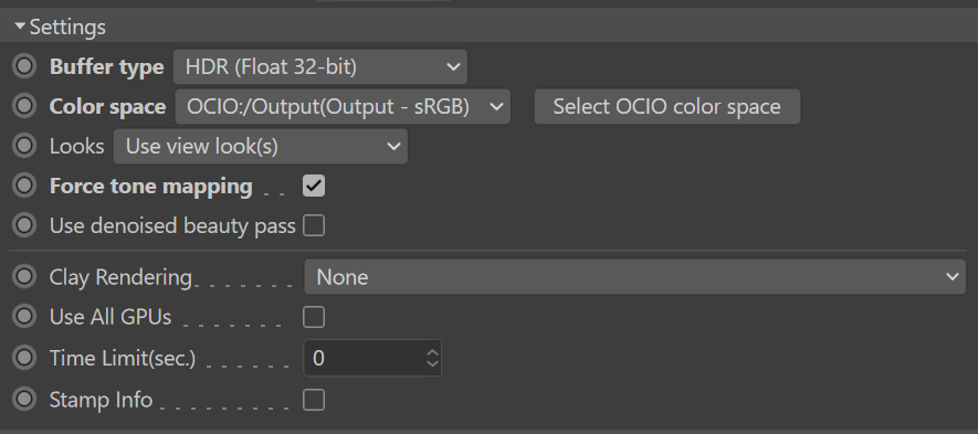 2) is "Buffer type" related to C4D output and it is not related with LV output right?