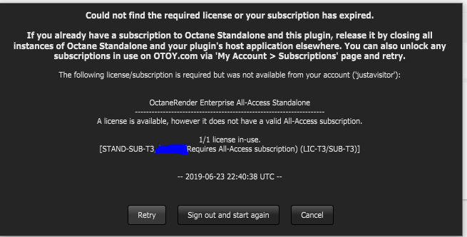 the subscription..." So all of a sudden OCTANE STOPS WORKING and "can't find a license"