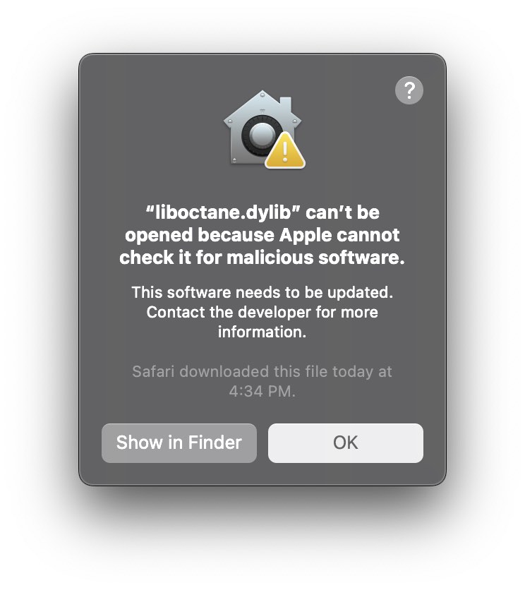 Of note, I was getting the customary 'cannot be opened because... unidentified developer' message for the .xlib, BUT the message I got on the .dylib file was different in that the dialogue states that it needs to be updated. My first launch worked without the dylib being loaded, but after clicking the 'open anyway' in system prefs, and relaunching I now get the crash dialogue from Cinema seconds into the launch sequence - pretty much the instant the splash screen comes up.