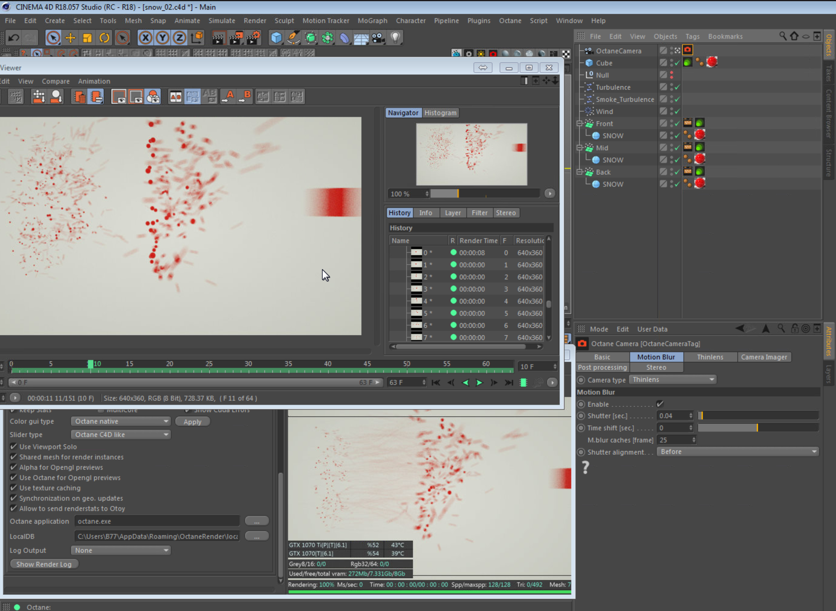 It's a simple scene for now. I just have emitters with an Object Tag that emit a sphere object. Then, just for testing purposes, I have an animated cube.