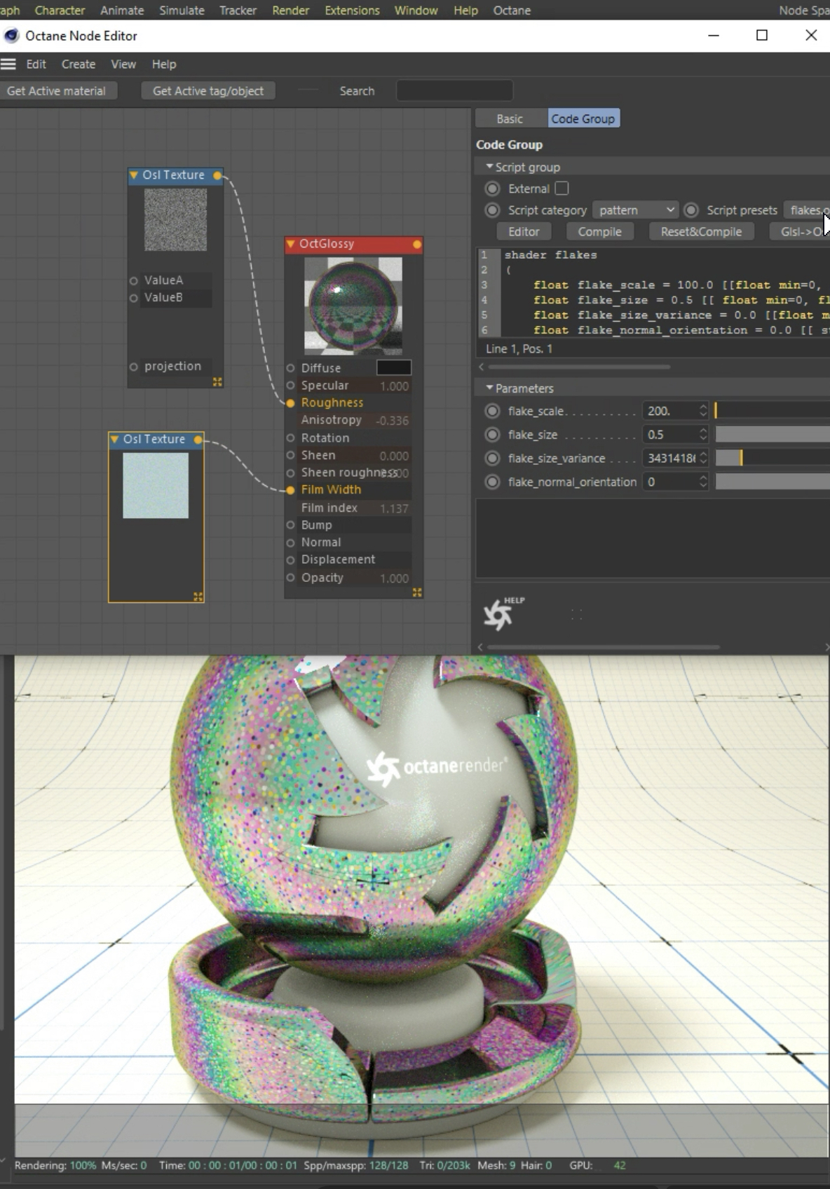 you definitely need a more complex material than this, but you could start by adding an OSL texture/flakes.osl to the Film width pin of a Glossy or Metallic material: ciao Beppe