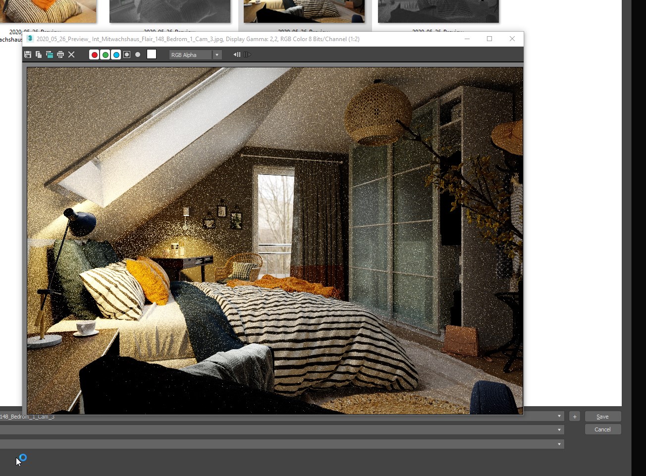 - Images on bottom are from the 3ds Max Frame Buffer, denoised beauty pass has a wrong gamma