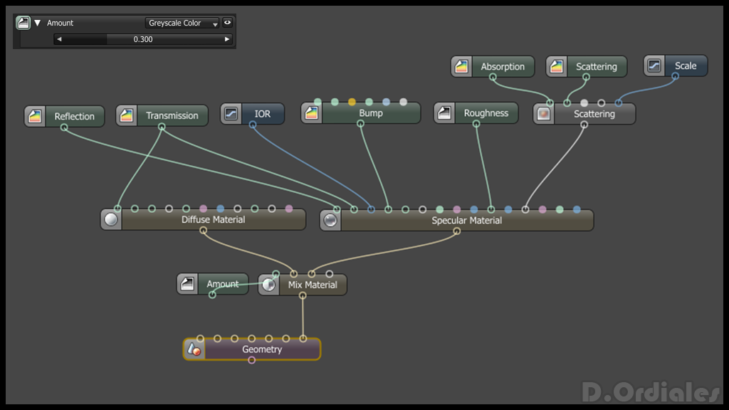 specular material. The mixture will apply a 30% diffuse material and 70% to speculate (of course, everyone should try to find their own values with those that you are most comfortable):