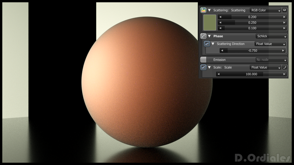 Phase parameter defines the type of scattering that are applying: inward (positive values); and outward (negative values) to obtain subsurface scattering. The