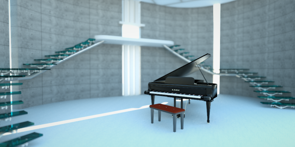 Maybe bring the piano closer to the camera, and add a texture to the floor