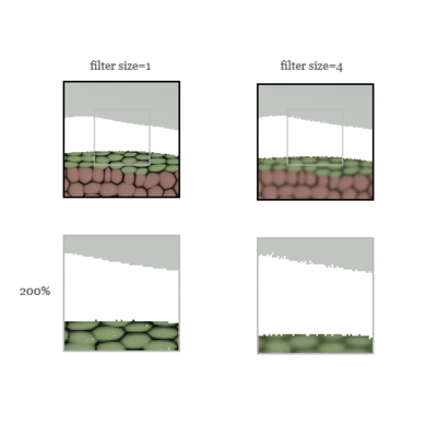 This is a little test of what happens in overbright areas even if you raise the filtering to 4. Results: completely blurred render, overbright pixels get scattered by filtering.