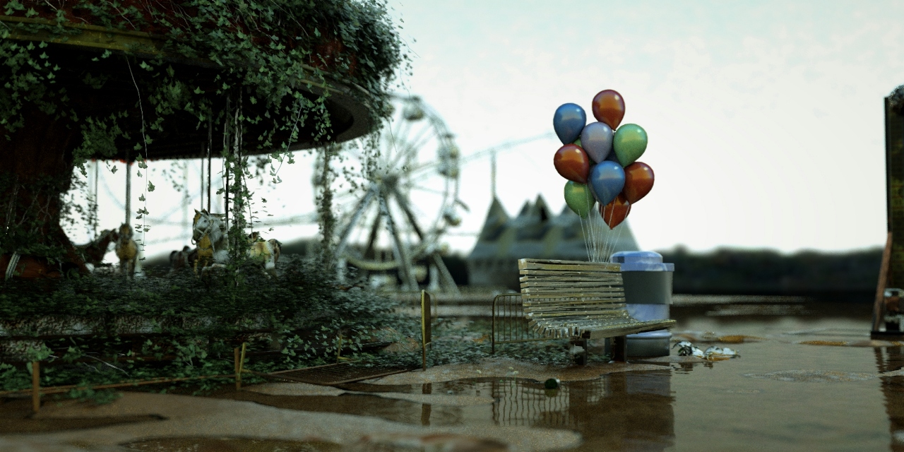 you should give the baloons some transparency, they currently look like they weight a ton each