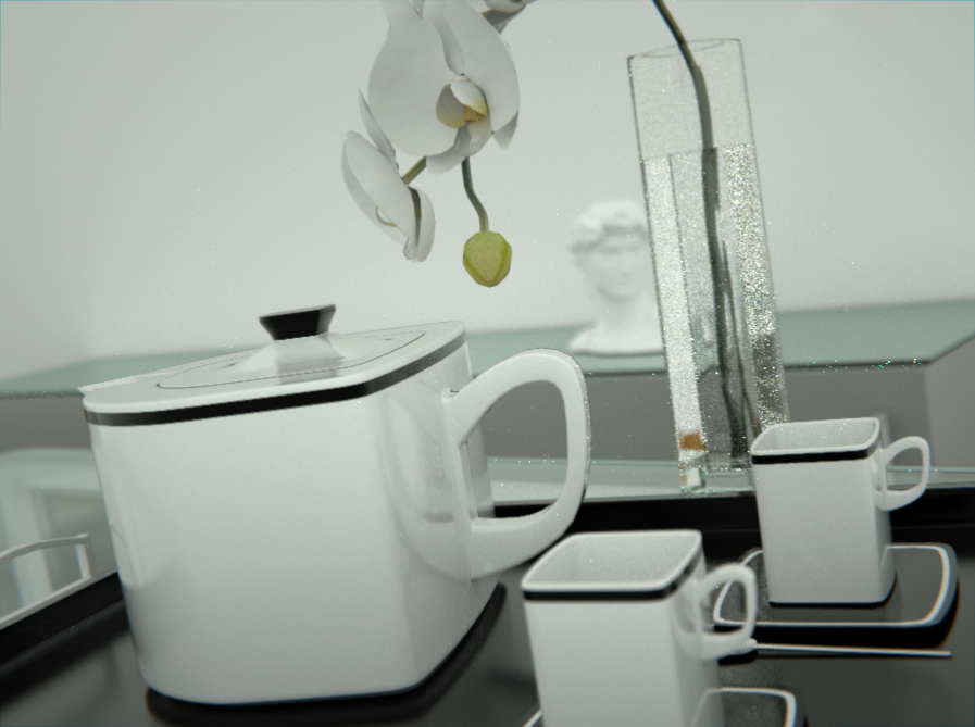 Don't remember exactly and I didn't capture that information, considering octane stops the rendering after a predefined amount of samples and I'm quite sure I've set this parm a bit higher then default, I would say 20 min but maybe less. This alpha version is not yet optimized for glass rendering, so the rendering time will be less in the future.