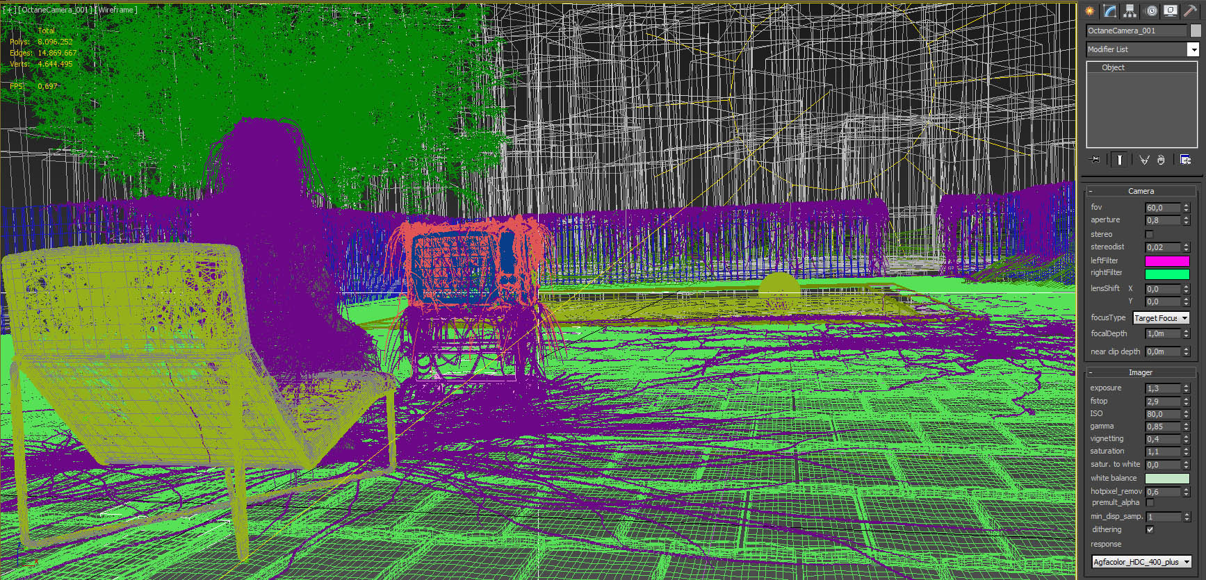 Hola. la verdad solo la realice tratando de copar lo maximo de la memoria disponible y utilizando varios plugins y comprobar la estabilidad de octane. las ramas fueron creadas con Ivy Generator, http://www.guruware.at . hay 49 ramas utilizadas, lo coloque sobre modelos anteriores y claro , luego solo los elimine y quedaron las ramas, los arboles solo les elimine las hoja y fue utilizado multiscatter. las losas las modeles y deforme, hay como 10 modelos diferentes, en total hay 700, el tiempo de voxelizacion fueron unos 6 minutos,.
