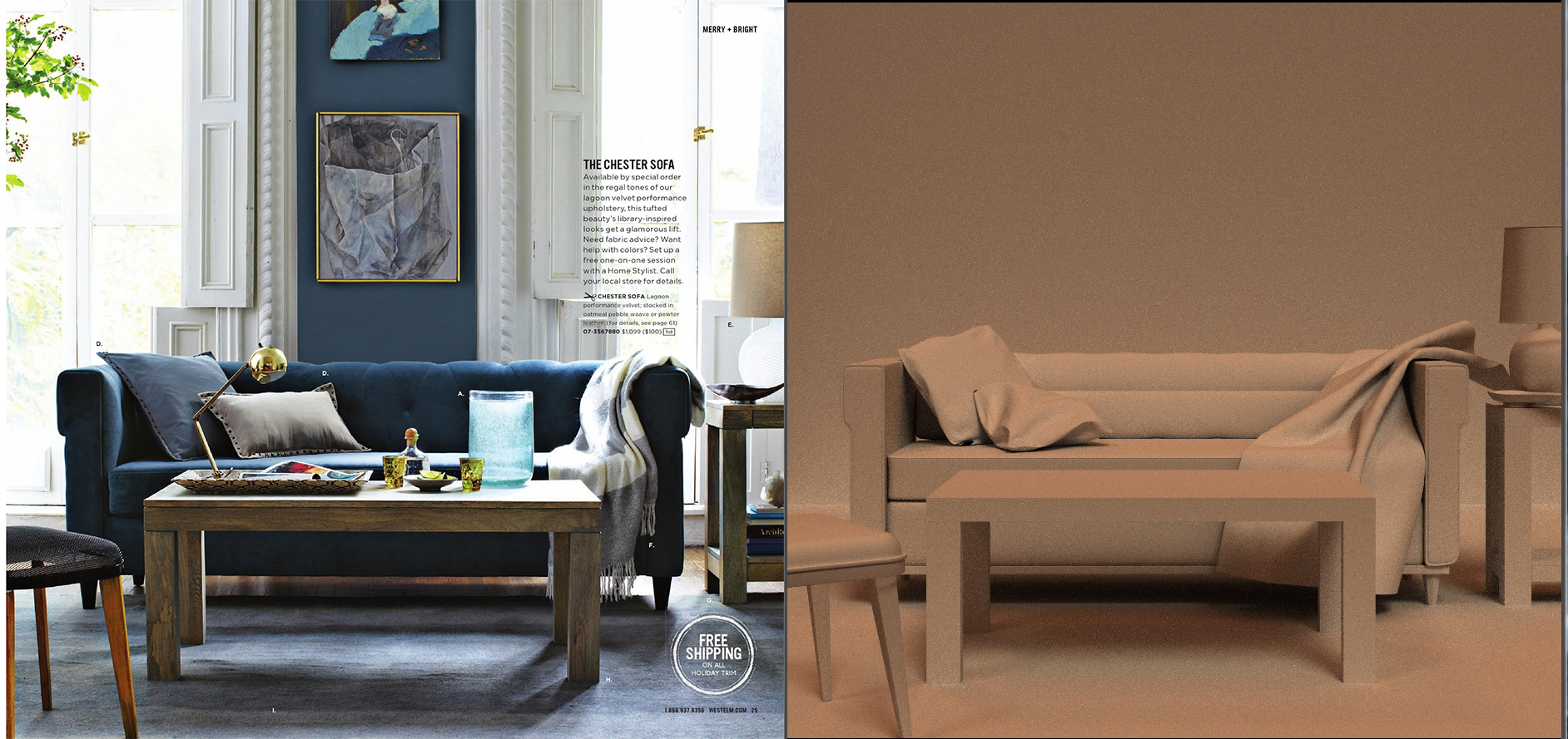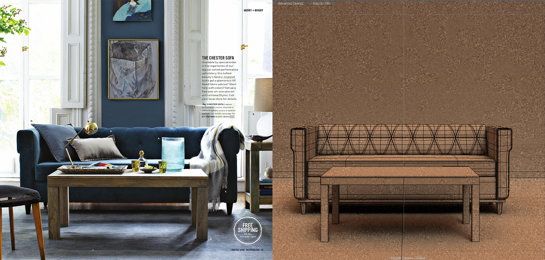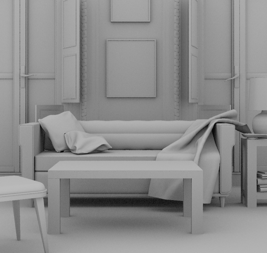 The tedious cloth simulation is done. Now I will start modeling more furniture.
