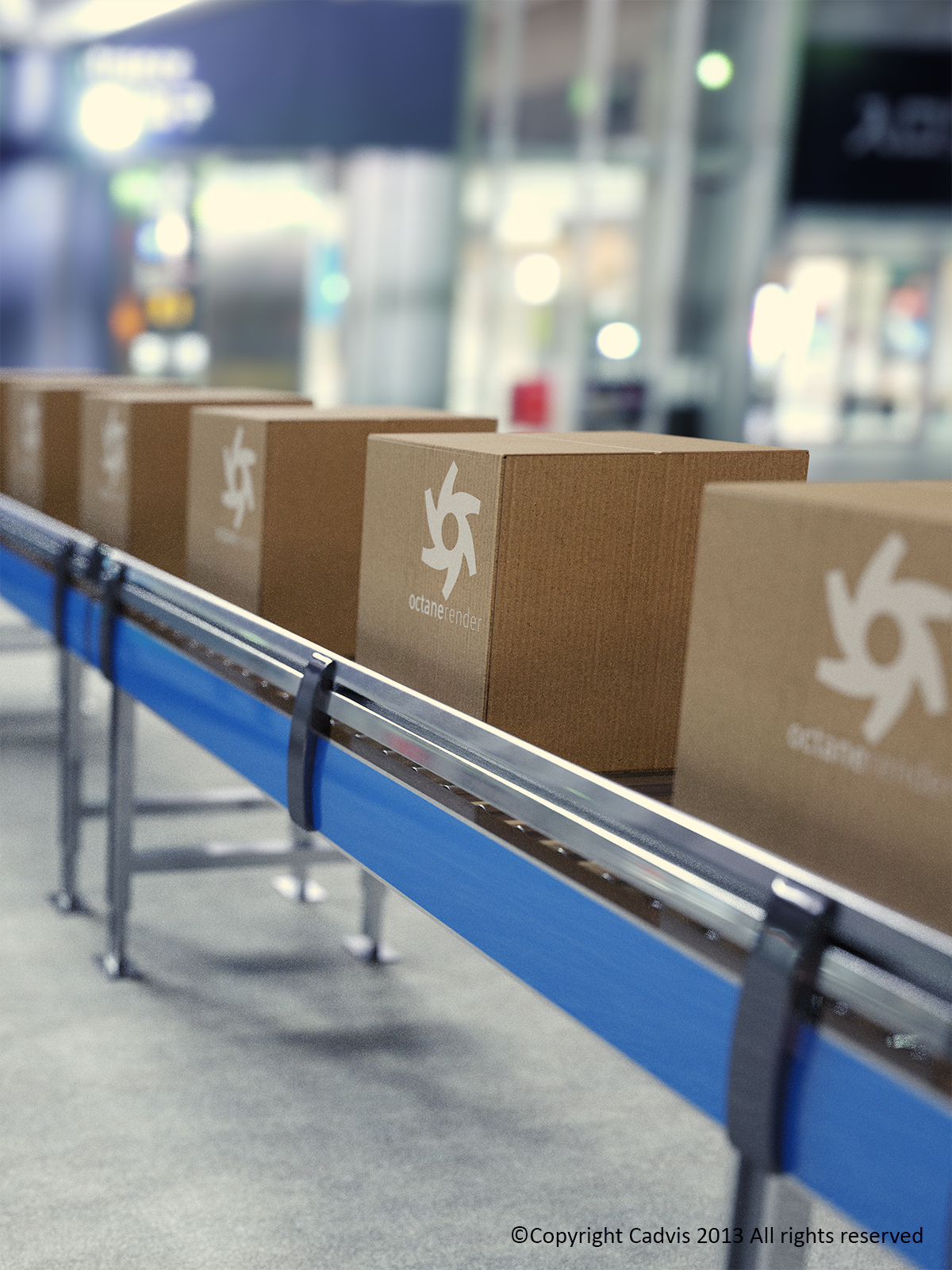 I really like your render, it's composed only by a floor plane and the transport system, isn't it?. What about the illumination? the background is in post?