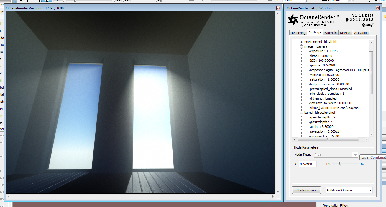 3) Set OctaneRender for ArchiCAD plugin. Open Viewport, start rendering, click A/F and select a focus point (this will turn OFF autofocus)