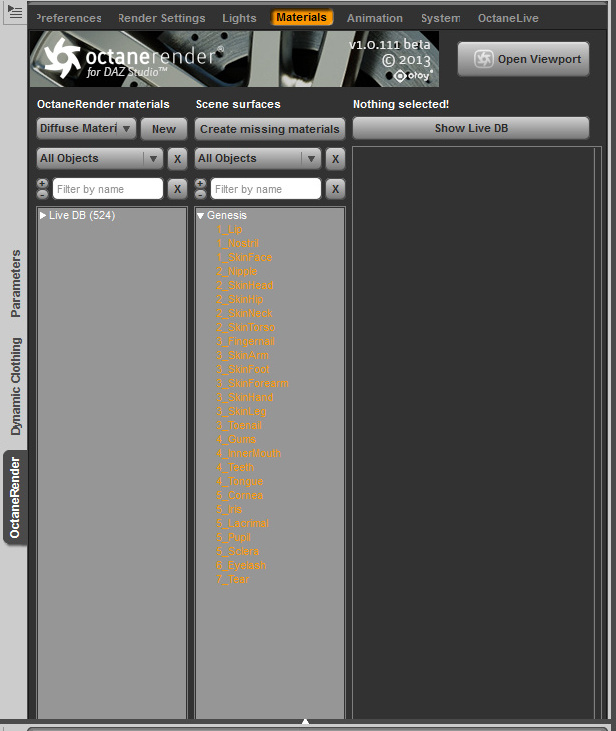- - the right hand tree shows now a bunch of colored surface entries for that genesis (means no octane mats linked)