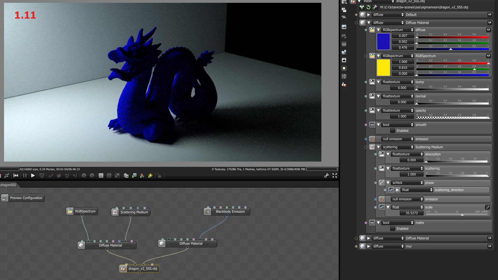 could you tell us if the standalone v1.11 have some trouble with the SSS node or how to reproduce this effect inside the V1.11?