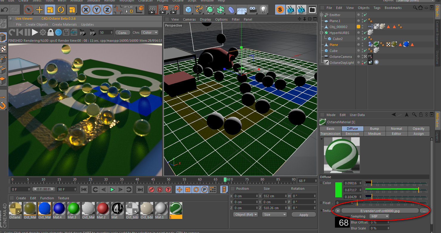 Live View->Create Materials->Octane Diffuse Material