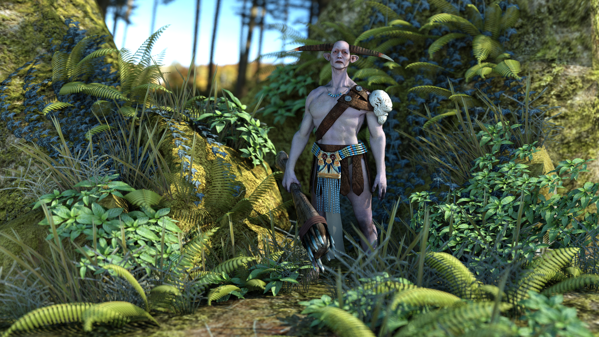 Second, you might want to consider adding more ground detritus. The pathway looks very bare and videogame-like. I think just making some very simple branches and placing them around on the ground to break up the apparent flatness would do wonders.