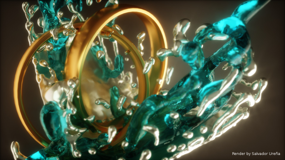 This is a fast illustration that I've made as a present for a wedding, there are two fluid simulations with different materials each one and imported as different obj nodes.