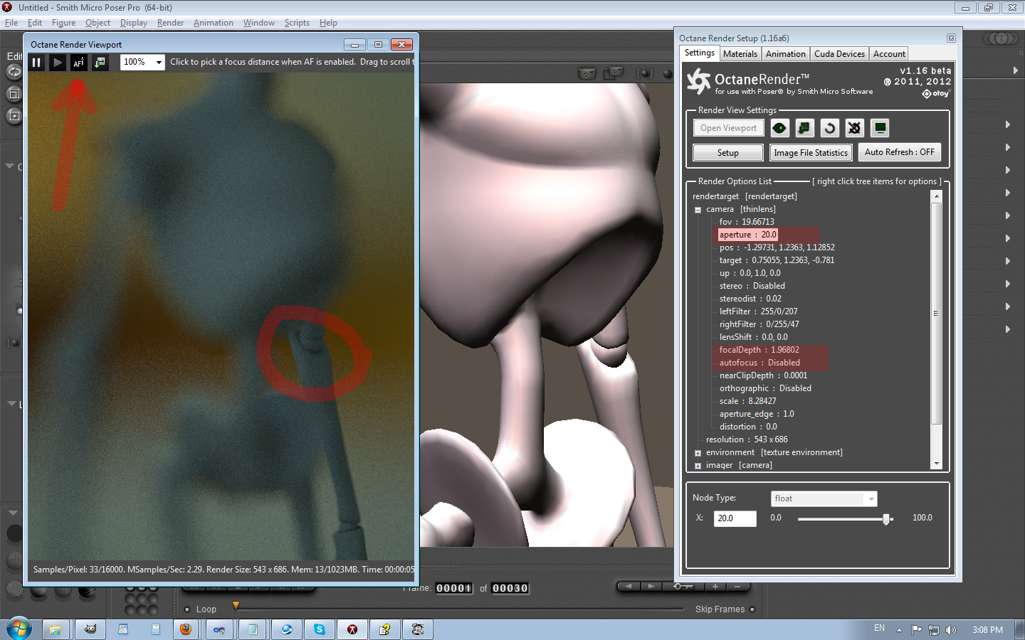 Yea I agree Paul, I should be clicking on the figures head in teh octane render view port correct?