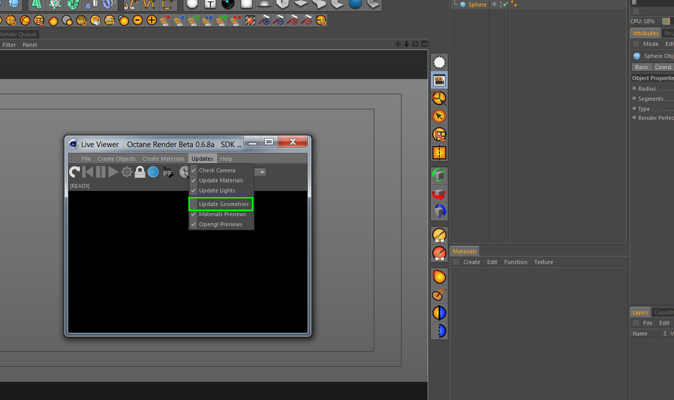 Yes you need to use the update geometries option, and then add the octane object tag to your object