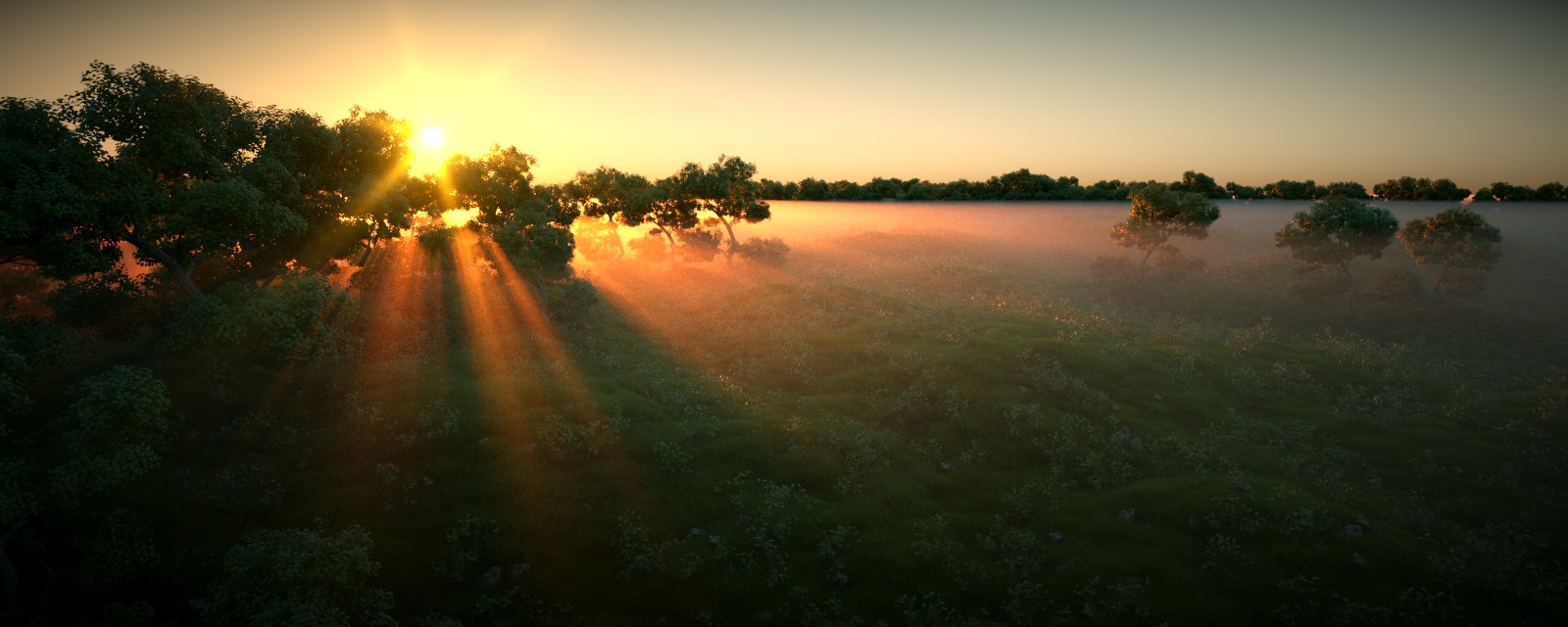 Can someone please explain to me how to create the fog effect/volumetric light to achieve the same effect shown in the picture above? (forest with sunrays and fog).