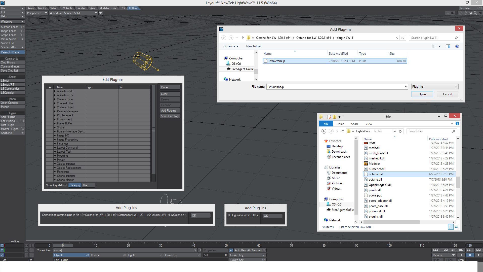 I can't install Octane plugin in Lightwave 11.5 or 11.6.