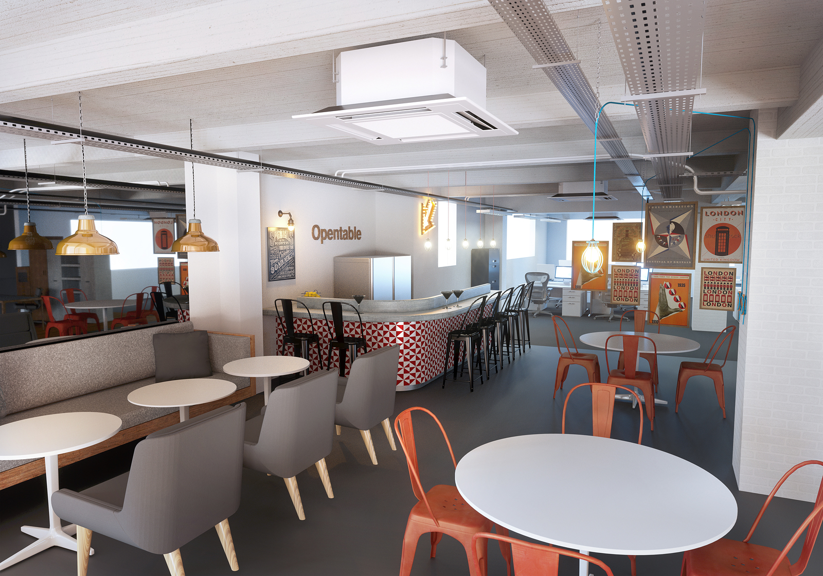 These are both terrific images. I do have one crit -- on the second image, the gray chairs with wooden legs look like they are floating. Other than that, these look fantastic!