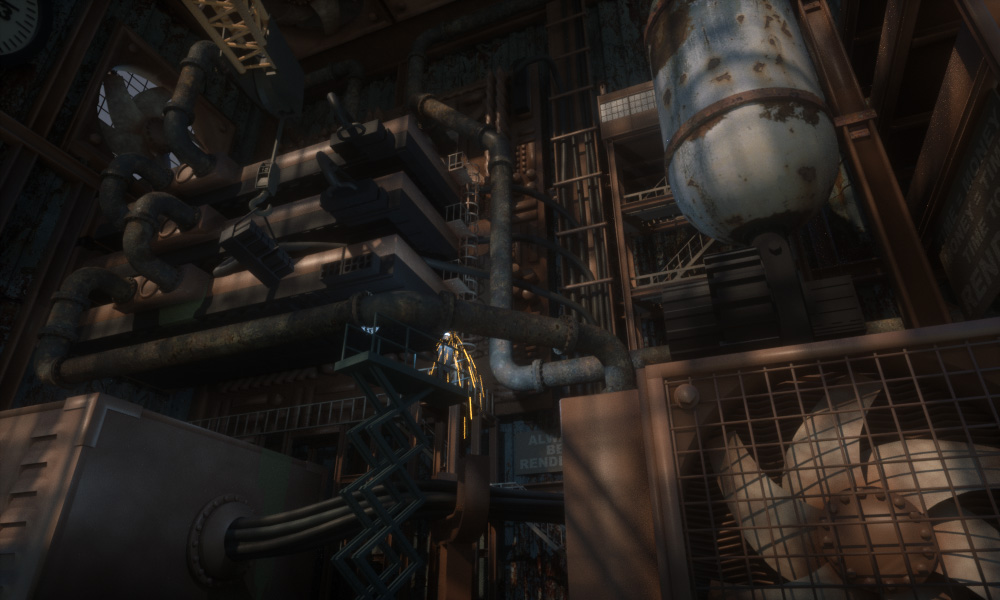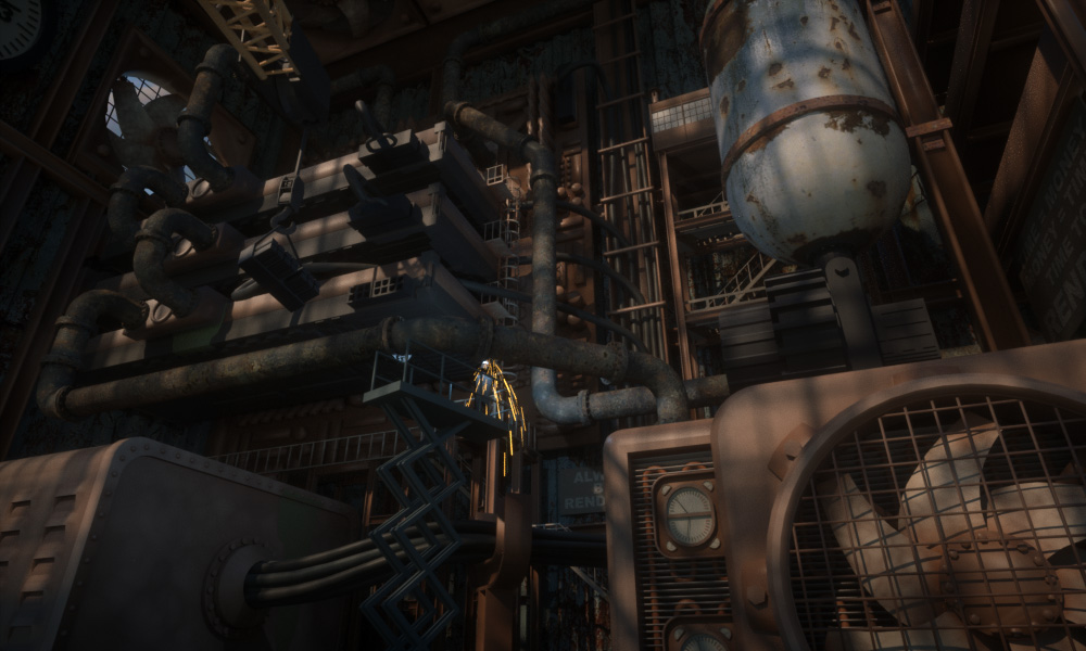Here is v2. Fans are looking way better with actual blades, for sure. Lot of other misc stuff.. Reservoir and pipes are coming along. There will be less and less of that rust all over.. and more and more paint (mostly chipped, peeled, corroded) and more color all around as we move forward. And even as I get tons more detail in objects and everything UV'd and textured, I will be tweaking and meddling up until 10/1... this I know.