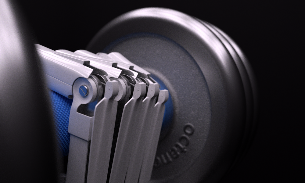 Here is a rendering speed and material tests on robotic hand (all on Titan, ~30s). I'm going to put a dumbbell in it, and maybe I'll add some details later.