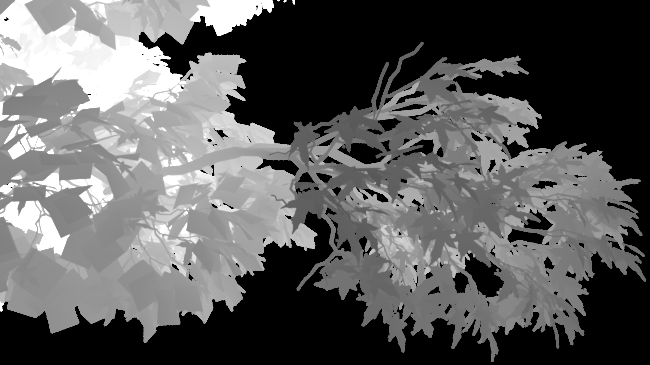 But this does not work with deep channel kernel and depth map. How do I render a depth map of the scene full of trees with alpha maps on leaf polygons ?