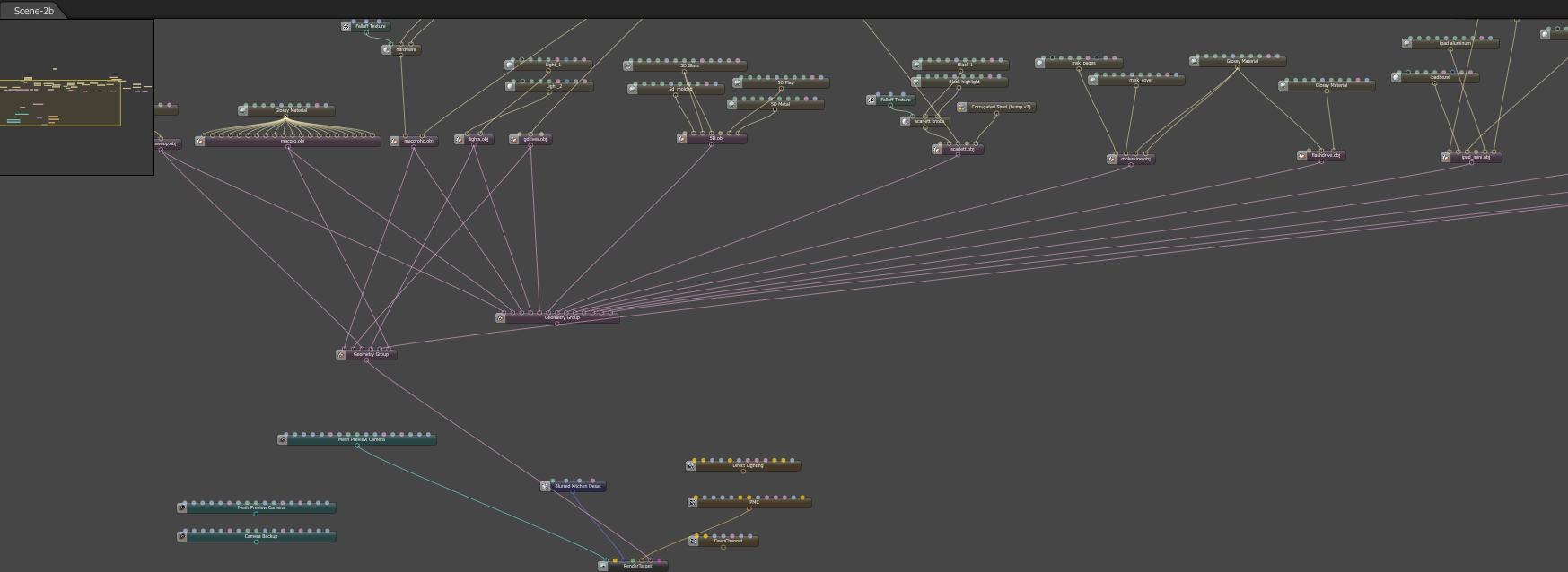 The thing I like about the network layout of nodes as opposed to the tree layout is that I can have different configurations at my fingertips and quickly connect and disconnect the nodes to try different scenarios (see pic) But really, now that I have gotten back into the groove, my request to have the Rhino plugin export to standalone wouldn't be much more helpful than simply exporting the .objs manually, except maybe to get camera positions synced between the two programs.