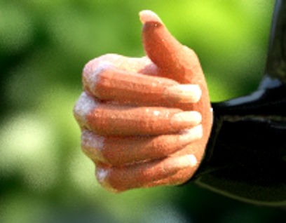 For some reasons they are working fine on the faces of the characters I want to render (maybe because the mesh of the head has much more polygons than the ones of the hands, feet...) but on the hands, the feet and the body there are ...I think - polygons of the 3D-mesh so the rendered pictures look very strange.