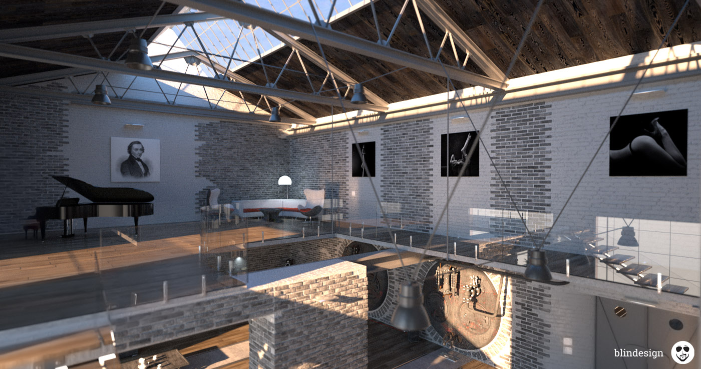 My main idea was to make a place that in the past could really be an industrial building and now has been adapted to live in it.