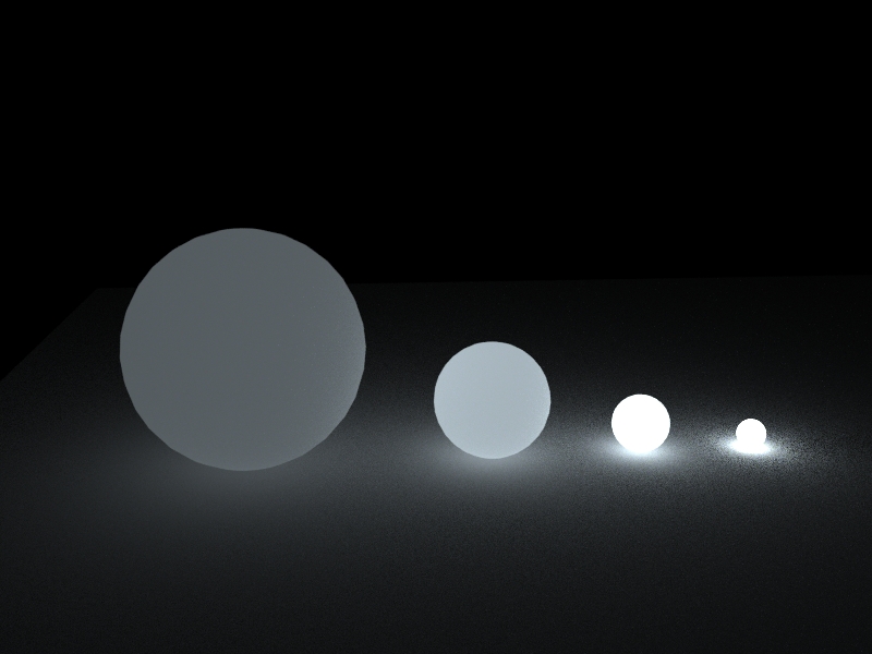 For example I wanted to animate a laser extruding a cylinder. When the cylinder was tiny there was a great emission of light. At the animation's end when the cylinder was entirely extruded the global emission was very low.