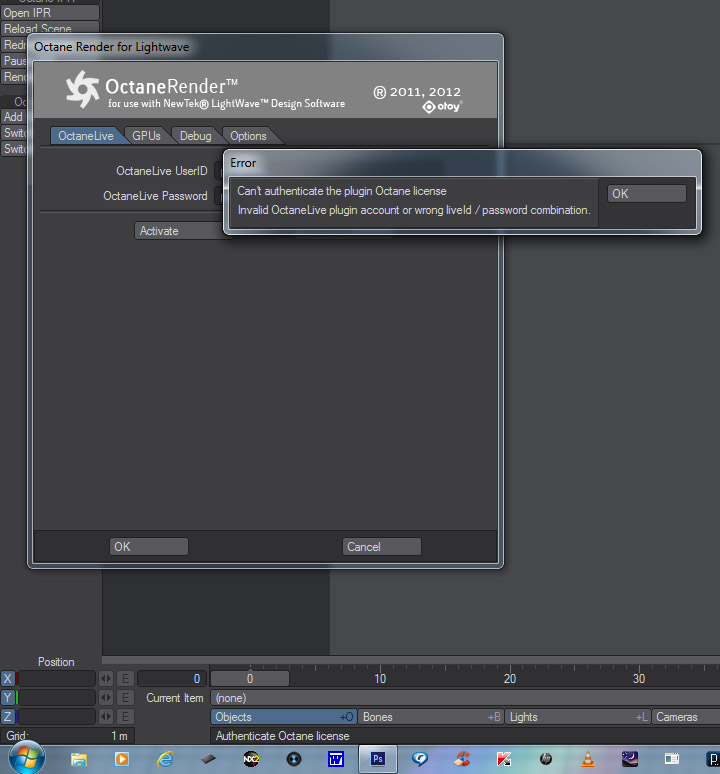 You need to login into your account page, go to the "OctaneLive Accounts" tab and there you have the Standalone username and password (for the standalone app) and your Lightwave plugin username and password. You need to enter the LW plugin user/password and activate it ... is this what are you doing?