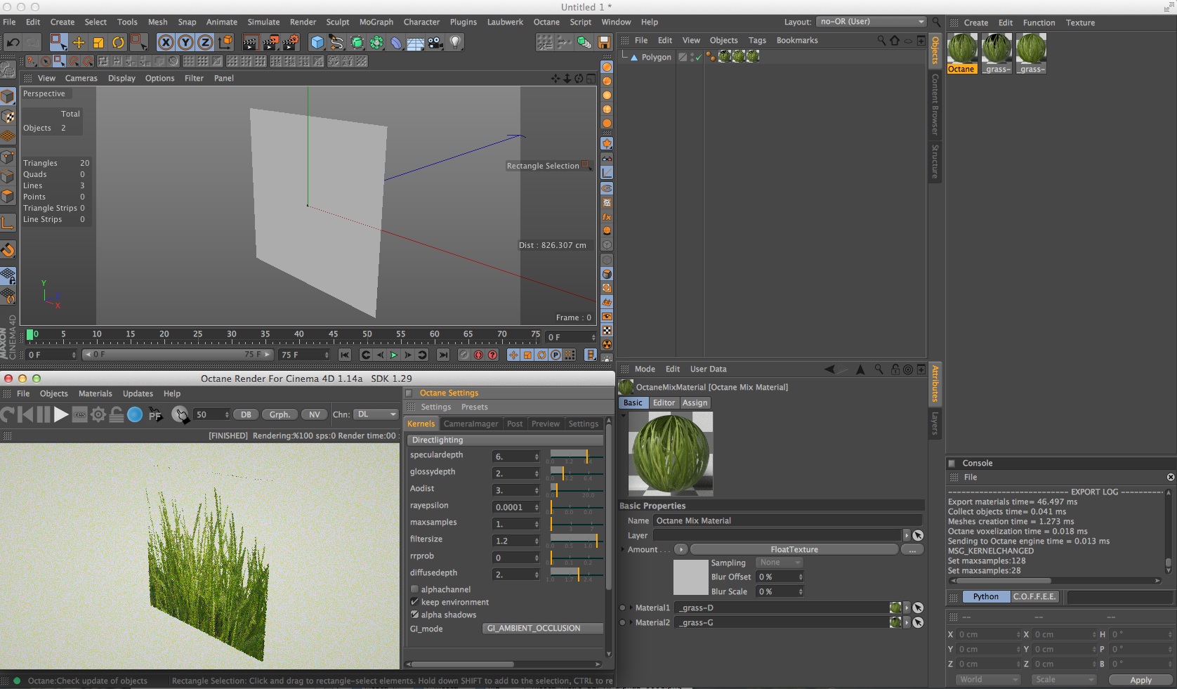 note for c4d users: in order to import the material from standalone to the integrated plugin, it's necessary to "ungroup" the material, from this: